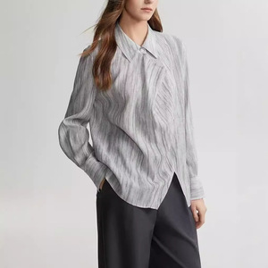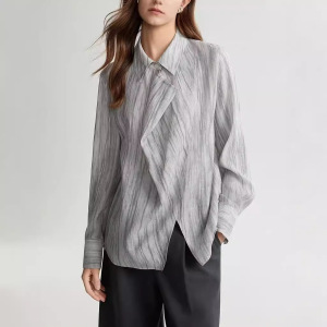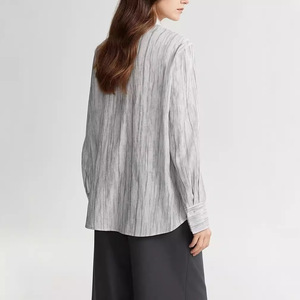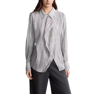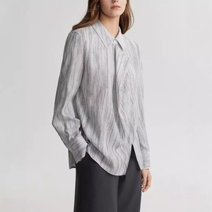 ELLE同タイプのフランスグラデーション水墨は亜麻のシャツの女性の24秋の新型の高級感があります。