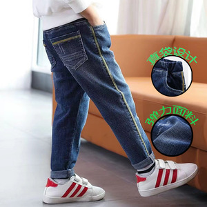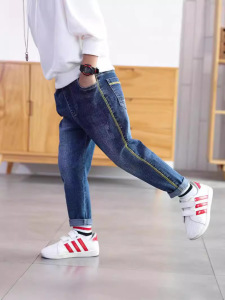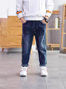 男の子のジーパンの秋の服の2024年の春と秋の新型のシンプルな百合の子供のズボンの中で大きい子供の格好いい外のズボンのファッション