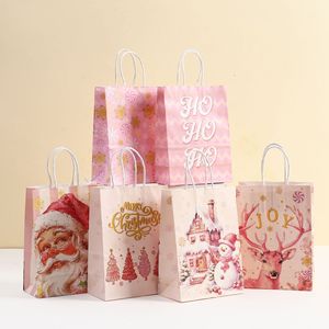 国境を越えた新しいクリスマス手提げ袋ピンク包装袋ショッピングバッグクラフト紙袋パーティーキャンディギフト袋