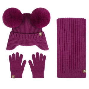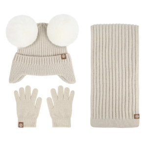 子供帽子マフラー手袋3点セット冬保温防寒毛玉耳保護帽子子供マフラー3点セット