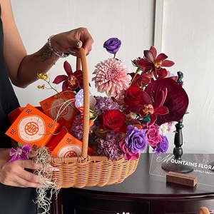 中秋節月餅果物かご生花手提げ花かご竹編み手編み花芸生け花かご月子卵かご