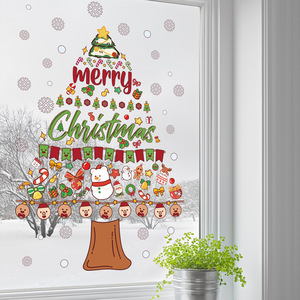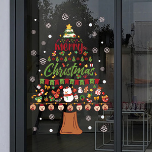 2025年越境新年・クリスマス装飾ガラスステッカー 抽象クリスマスツリー 静電ステッカー ウィンドウステッカー カスタムウォールステッカー