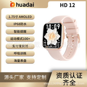 Hd 12スマートbluetooth通話腕時計1.75インチアモルスクリーン心拍数血酸素睡眠監視NFCクロスボーダー