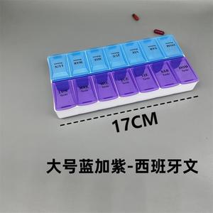 リビングルームのテーブル上のピルボックス 7日間 14コンパートメントの小さなピルボックス、点字付き 7日間の薬の再包装防塵収納ボックス 寝室