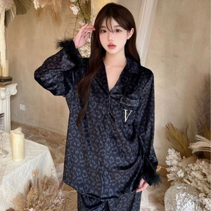 2024【小羽毛羽】秋冬韓系高級感パジャマ少女v字母長袖金ベルベット家服