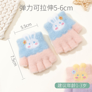 雪のショーの冬の0-3歳の赤ちゃんの半分の指の手袋のかわいい漫画のニットの防寒の保温の男女の子供の手袋