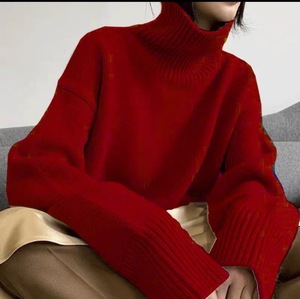 純色の底のシャツのニットの女性の高襟はやせていてゆったりしています。