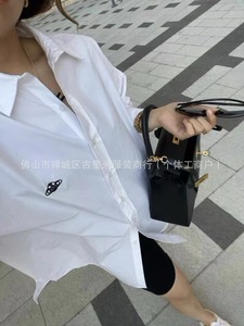 202秋デザインニッチホワイトシャツレディースルーズレイジースタイルハイエンドシャツパープルプラネットトップ