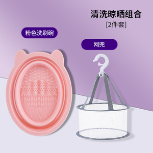 メイクブラシとパフ洗浄3点セット、シリコン折りたたみ洗浄ボウル、洗浄用品、ビューティーエッグツール、乾燥ネット