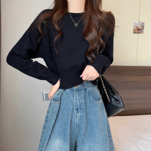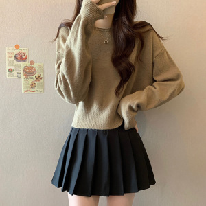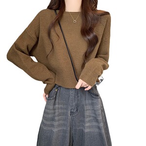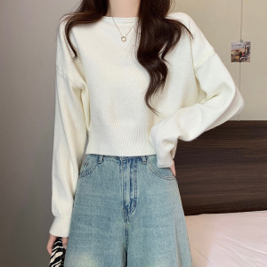 2024春秋の中にセーターを着て、小さい背の短い上着のファッションの韓国版の学院の風のメリヤスの底のシャツの女性を掛けます。