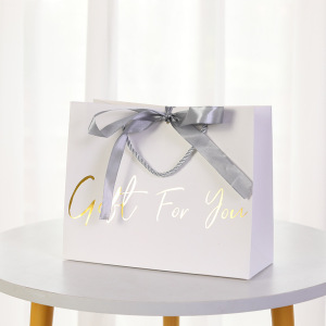 黒のホットスタンプ - シルバーのリボン、白のボール紙、M サイズ 24.5*9.5*19.5cm