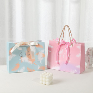 おしゃれな森ガール風ギフトバッグ加工 誕生日プレゼントバッグ 紙包装袋 ハンドバッグ リボン付き完成品 キャンディバッグ