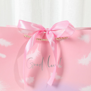 ピンクのホットスタンピング - ピンクのリボン、白いボール紙、M サイズ 24.5*9.5*19.5cm