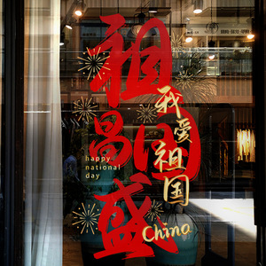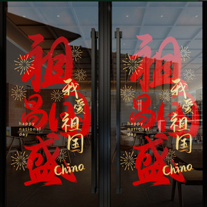 GQUV233国慶節ガラス装飾ドアシールデパートのショーウインドーは祝日の雰囲気を描いて静電シールを配置する