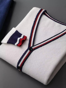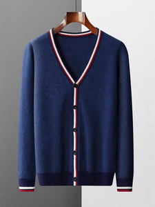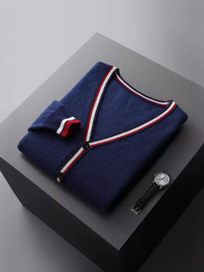 新型ビジネスカジュアルウールカーディガン男性vネック衝突色セーターコート減齢上着青年セーター男