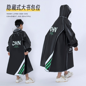 レインコートの子供の長いタイプの全身のシングル中学の学生は専用の豪雨防止の小学生のかばんの男女のレインコートに乗ります。
