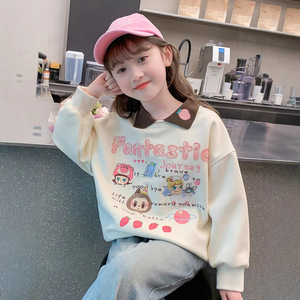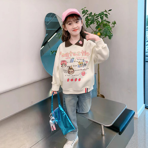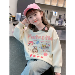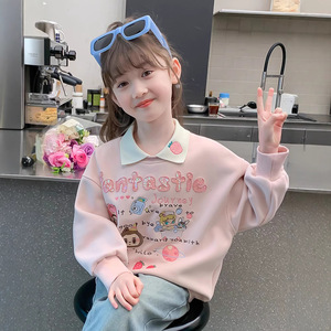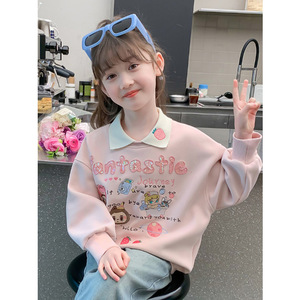 女の子のパーカー春秋モデル2025新型洋気子供の秋服の女の子の秋のゆるいPOLO襟の上着の潮