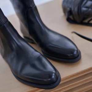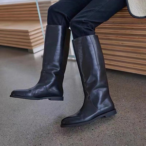 無標 ~ 東莞厚街詩歌蘭同金低ヒール快適ブーツ真皮丸頭平底高筒ブーツマーティンブーツ