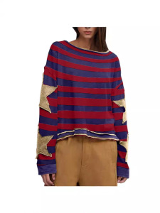 2024欧米の外国貿易の越境アマゾンの女性の五角星は色の長袖をつづり合わせます。