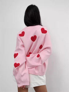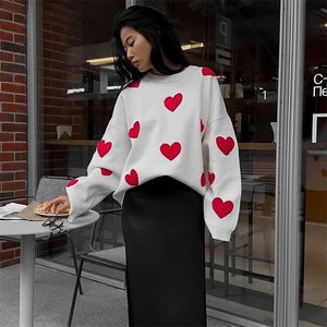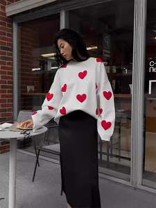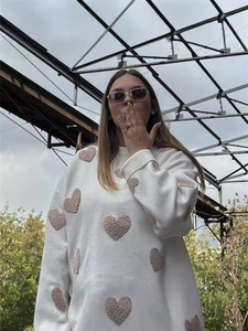 欧米のクロスボーダーの新型長袖のゆったりとしたカジュアルな百合秋冬の頭のニットの愛の刺繍の丸首の上着