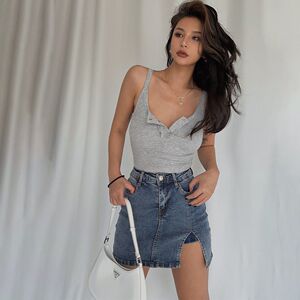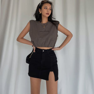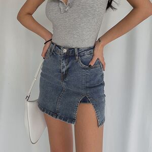 大きいサイズのフォークのデニムの半身のスカートの女性の春秋の2024弾力性の高い腰の復古の包みの尻の百合A字のズボンのスカートのinsの潮