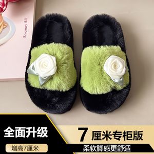 可爱いファッション特猫一字スリッパの女性モデルは、2024年秋冬の新しい厚い底に毛の高いスリッパを着ています
