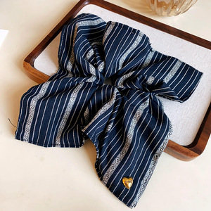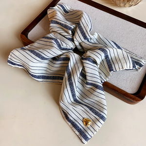 布芸のストライプの四角形のしわの愛の髪輪はシンプルでレトロなデザインの馬尾の髪紐に合わせて新型の皮筋の髪飾りをします。
