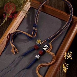 チベット式の手で綿のネックレスの紐をこすります。天珠を横切ることができます。