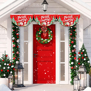国境を越えた新しいクリスマス扇形旗欧米クリスマスパーティーに旗を掲げたガードレールが半円旗扇形旗を飾っている