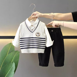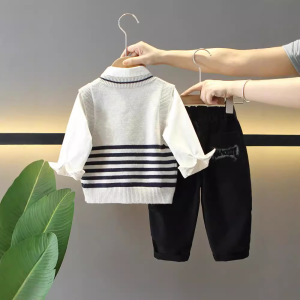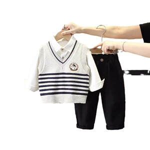男の子用スーツ 春秋モデル 2025年新作 おしゃれな幼児・子供向け カレッジ風セーター・ベスト3点セット ベビー服