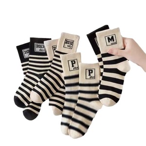 子供の靴下のストライプのアルファベットの男の子の中で靴下の秋冬の漫画の中で大きい子供の骨がない運動の男の子の学生の靴下