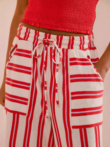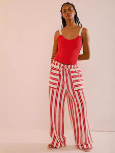 ヨーロッパとアメリカの巾着カジュアルパンツ女性用2025新しいホームウェアラブル痩身ストライプパンツ