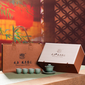 竜泉青磁の携帯の工夫の茶器の1碗の4杯のセットの陶磁器の手の蓋の碗の主人はお茶を入れます。