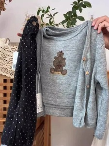 女の子春と秋の新作セット漫画ニットカーディガン子供用カジュアル3点セット0055A062