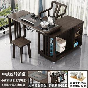 回転ティーテーブル + 火傷防止底給水 + 黒陶器 + 椅子 1 脚、スツール 1 脚