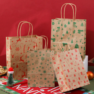 跨境新款圣诞节礼品袋节日送礼牛皮纸卡通手提袋礼品包装纸袋批发
