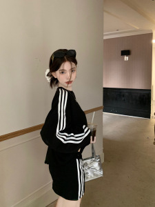 【工場現物】カジュアルスーツ韓国風パーカー女性早秋A字バッグヒップスカートスカートファッション2点セット