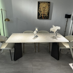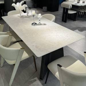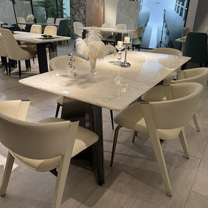 天然豪華石食卓大理石軽豪華高級輸入別荘家庭用食卓と椅子の新型長方形月光白