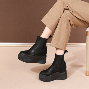 9.5% のビスケットの厚い底のカジュアルなチェルシーの靴の英倫風のファッションの百合の丸い頭の中で1足のショートブーツを高く上げます。