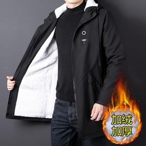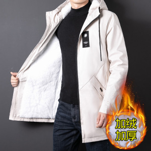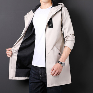 ミディアムコート男性春秋新作韓国版ファッション帽子風衣カジュアルクロスボーダーベルベットジャケット男性