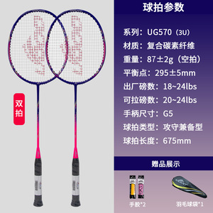 3U コンポジットカーボンワンピースバドミントンラケットダブルラケット UG550 エクストリームパープル