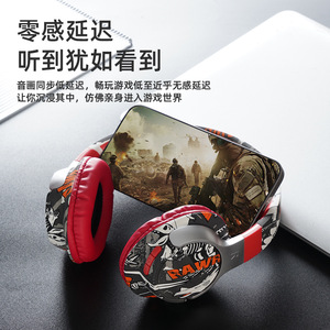 新商品の国潮風のクールな落書きのヘッドセットの無線のbluetoothのイヤホンの重低音の運動の電気競争のクロスボーダーの爆発金