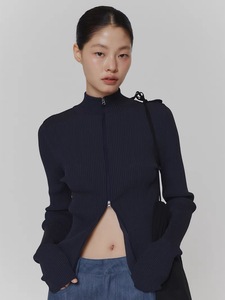 今H秋韓国デザイナーニッチMO快適、スタイリッシュ、スリムで多用途な高弾性スレッドジッパーカーディガン3色
