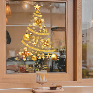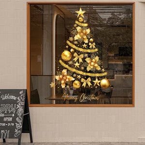 愛客jd 4602クリスマス風船金色クリスマスツリーガラス貼り祝日雰囲気配置糊なし静電貼り