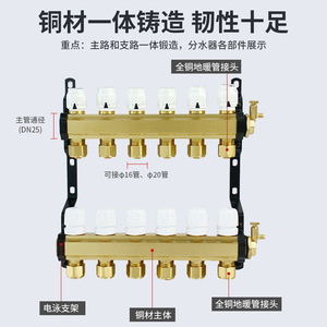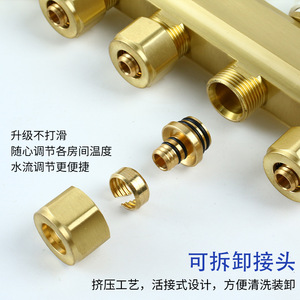 全銅家庭用床暖房分水器大流量新型四路五路六路純銅地熱分水器バルブ
