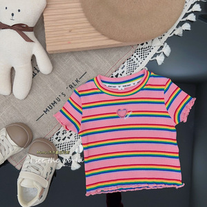 女の子半袖上着カラーバー弾力T韓国版2024洋気tシャツファッションファッションファッションとデニムパンツ夏