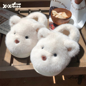 かわいい家の綿は男女の冬の新型の柔らかい萌えの熊を引っ張って保温して快適なカップルのinsの全包みと毛羽立ちの靴を持ちます。