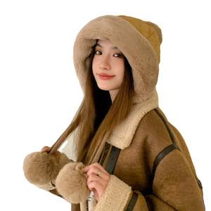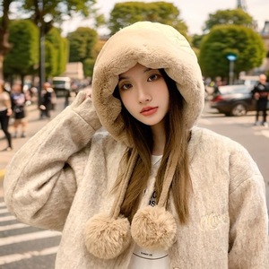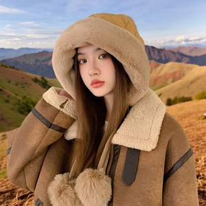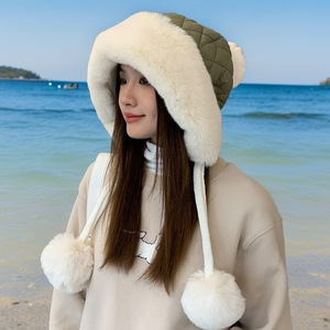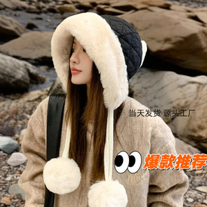 女性保温耳保護帽ダウン帽子女性冬防風帽ベルベット綿帽自転車防寒帽パイル雷鋒帽