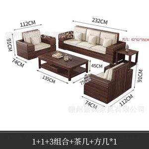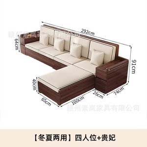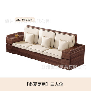 新中国式黒胡桃木全実木客間ソファー大小戸型冬夏両用貴妃家庭用貯蔵ソファー