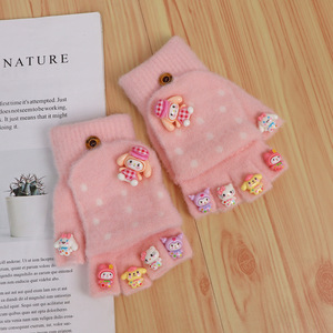子供の手袋の女の子の3-6歳の漫画のかわいい半分の指はふたをひっくり返して保温します。